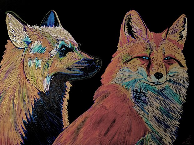 Commission of two foxes for Stephanie Gurney. Part of my extended Luminiferous Series.