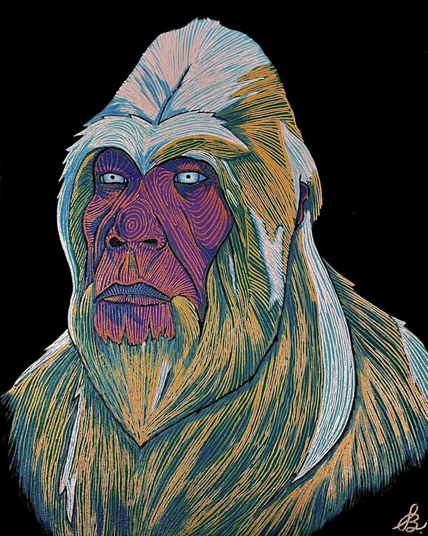 My original painting of the legendary Sasquatch, a piece I dedicated to the preservation of the Fairy Creek Watershed.