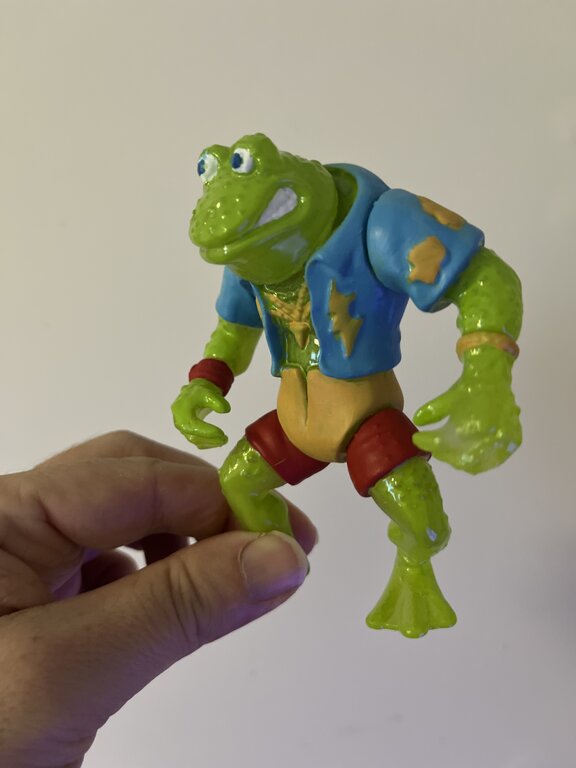 A 3D printed replication of TMNT’s Genghis Frog figure from playmates.
